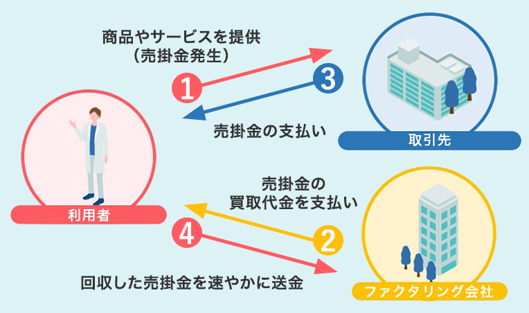 ファクタリングは、事業主がこの売掛金(売掛債権)をファクタリング会社に売却(譲渡)することで、本来の支払い期日よりも前に現金を受け取れる資金調達方法です。