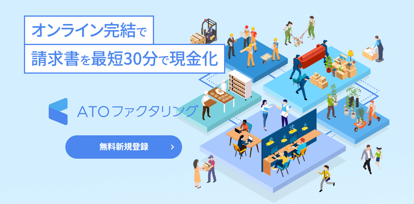 ATOファクタリングは、ATO株式会社が運営するファクタリングサービスです。